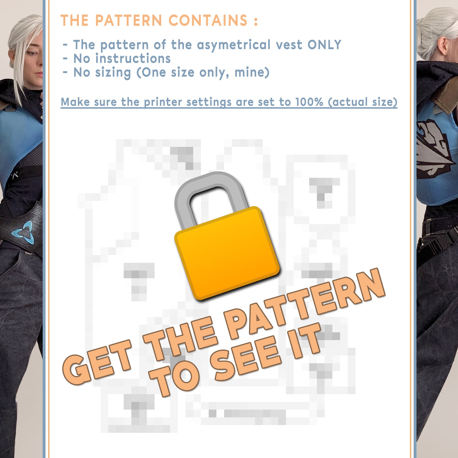 Digital pattern to make an asymetrical bolero (short vest), I used it for my Jett cosplay from Valorant. Please note that this is one size only so it’s not graded.