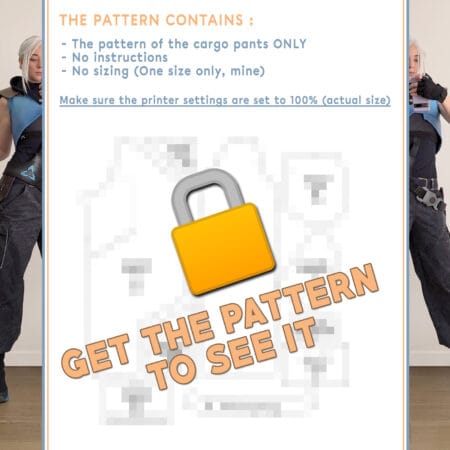 Digital pattern to make a cargo pants, I used it for my Jett cosplay from Valorant. Please note that this is one size only so it’s not graded.