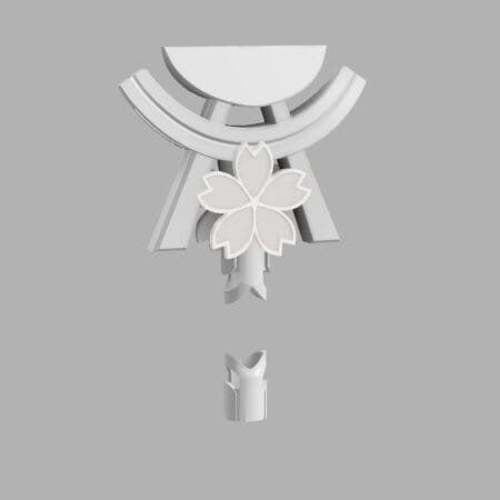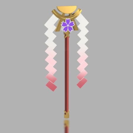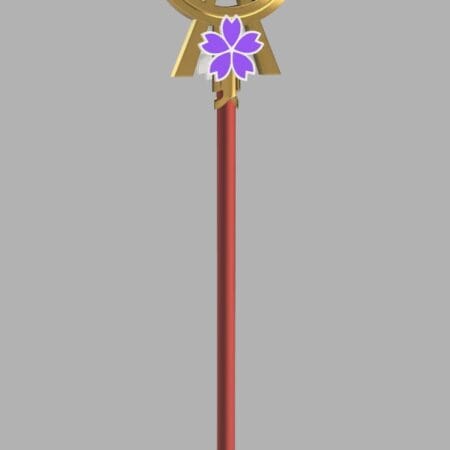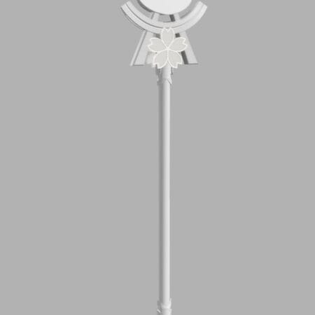 The kit comes in 3 parts to assemble and glue together. The 3D file includes only the top gold part + the flowers + the bottom part. It does no include the staff nor the side paper part. You will need a 18mm diameter stick for the handle (wood is good for it, as well as PVC pipe).